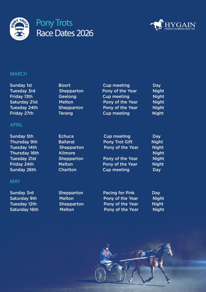 To register your interest in the next pony trots season email ponytrotsvic@hrv.org.au